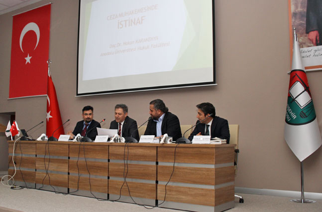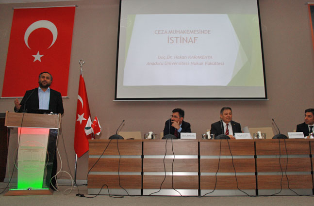 Oturum Başkanlığını Baro Başkanımız Av. Rıza ÖZTEKİN'in yaptığı, Anadolu Üniversitesi Hukuk Fakültesinden Doç. Dr. Hakan KARAKEHYA, Doç. Dr. Mustafa AVCI ve Yrd. Doç. Dr. Tolga AKKAYA'nın konuşmacı olarak katıldığı "İstinaflar" konulu panel yoğun bir katılım ile tamamlandı.