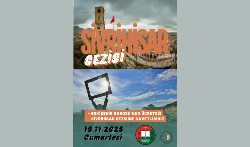 Eskişehir Barosu olarak, avukat ve stajyer avukatlarımızın katılımına açık olmak üzere, 15 Kasım 2025 tarihinde ücretsiz bir Sivrihisar Kültür Gezisi düzenliyoruz.