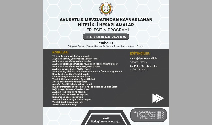 Avukatlık Mevzuatından Kaynaklı Nitelikli Hesaplamalar İleri Eğitim Programı - 14-15-16 Kasım 2025