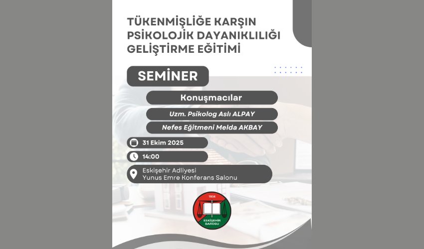 Tükenmişliğe Karşın Psikolojik Dayanıklılığı Geliştirme Eğitimi - 31.10.2025