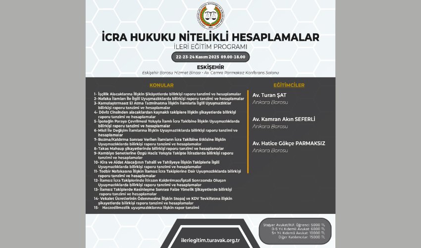 İcra Hukuku Nitelikli Hesaplamalar İleri Eğitim Programı - 22-23-24 Kasım 2025